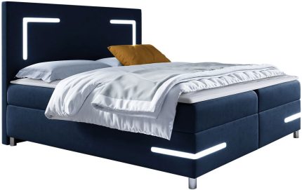 Επενδυμένο κρεβάτι Dobrik-160 x 200-Μπλέ-Με μηχανισμό ανύψωσης