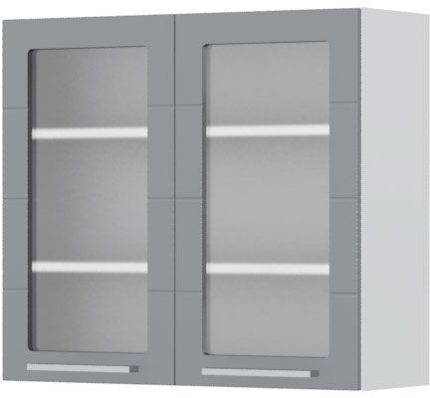 Ντουλάπι κρεμαστό Hudson V7-80-2KS με βιτρίνα-Λευκό – Γκρι