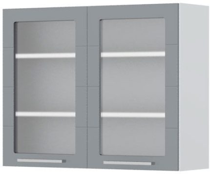 Ντουλάπι κρεμαστό Hudson V7-90-2KSP με βιτρίνα-Λευκό – Γκρι
