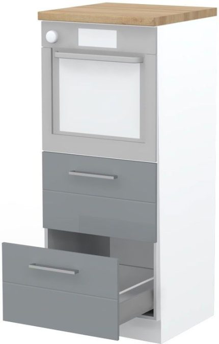 Επιδαπέδιο ντουλάπι φούρνου ψηλό Hudson K21-60-2KR-Λευκό γυαλιστερό – Γκρι