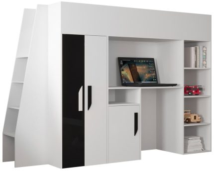 Βιβλιοθήκη Young κλειστή με τραπέζι-Λευκό – Μαύρο