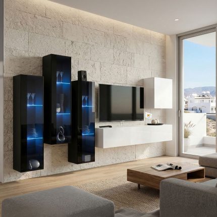 Σύνθετο σαλονιού Swis XIII-Μαύρο – Λευκό