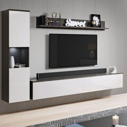 Σύνθετο σαλονιού Paris Xl-Λευκό Γυαλιστερό – Ανθρακί