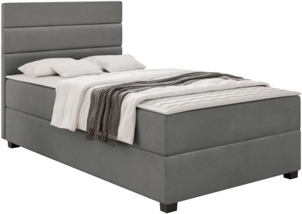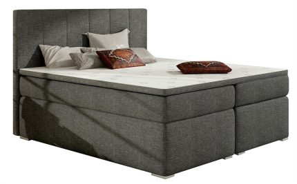 Επενδυμένο κρεβάτι Belo με στρώμα και ανώστρωμα-Γκρι Σκούρο-180 x 200