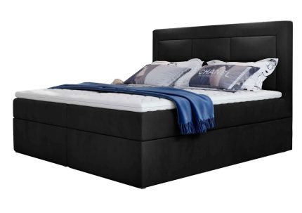 Επενδυμένο κρεβάτι Belo με στρώμα και ανώστρωμα-Μαύρο-160 x 200