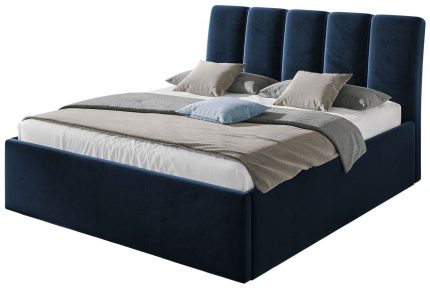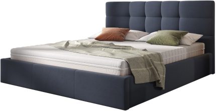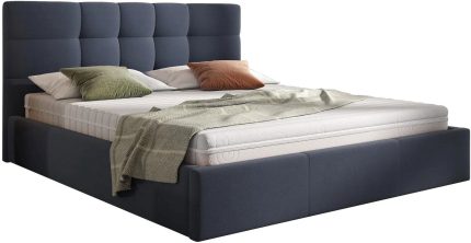 Επενδυμένο κρεβάτι Volcito-160 x 200-Μπλέ-Με μηχανισμό ανύψωσης