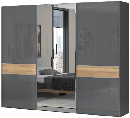 Ντουλάπα συρόμενη τρίφυλλη Agate 280 με καθρέπτη