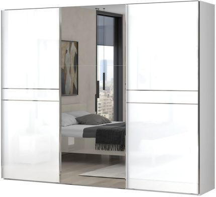 Ντουλάπα συρόμενη τρίφυλλη Realm 280 με καθρέπτη-Λευκό