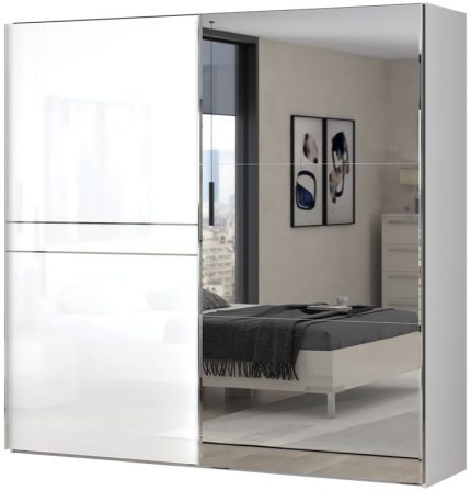 Ντουλάπα συρόμενη δίφυλλη Realm 180 με καθρέπτη-Λευκό