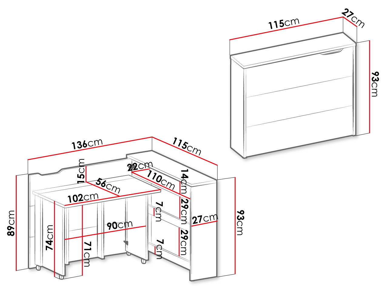 Αναδιπλούμενο γραφείο Concept-Leuko-Αριστερή