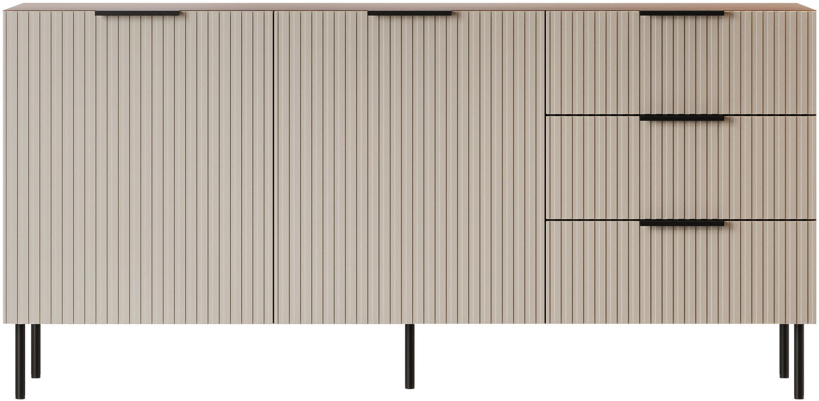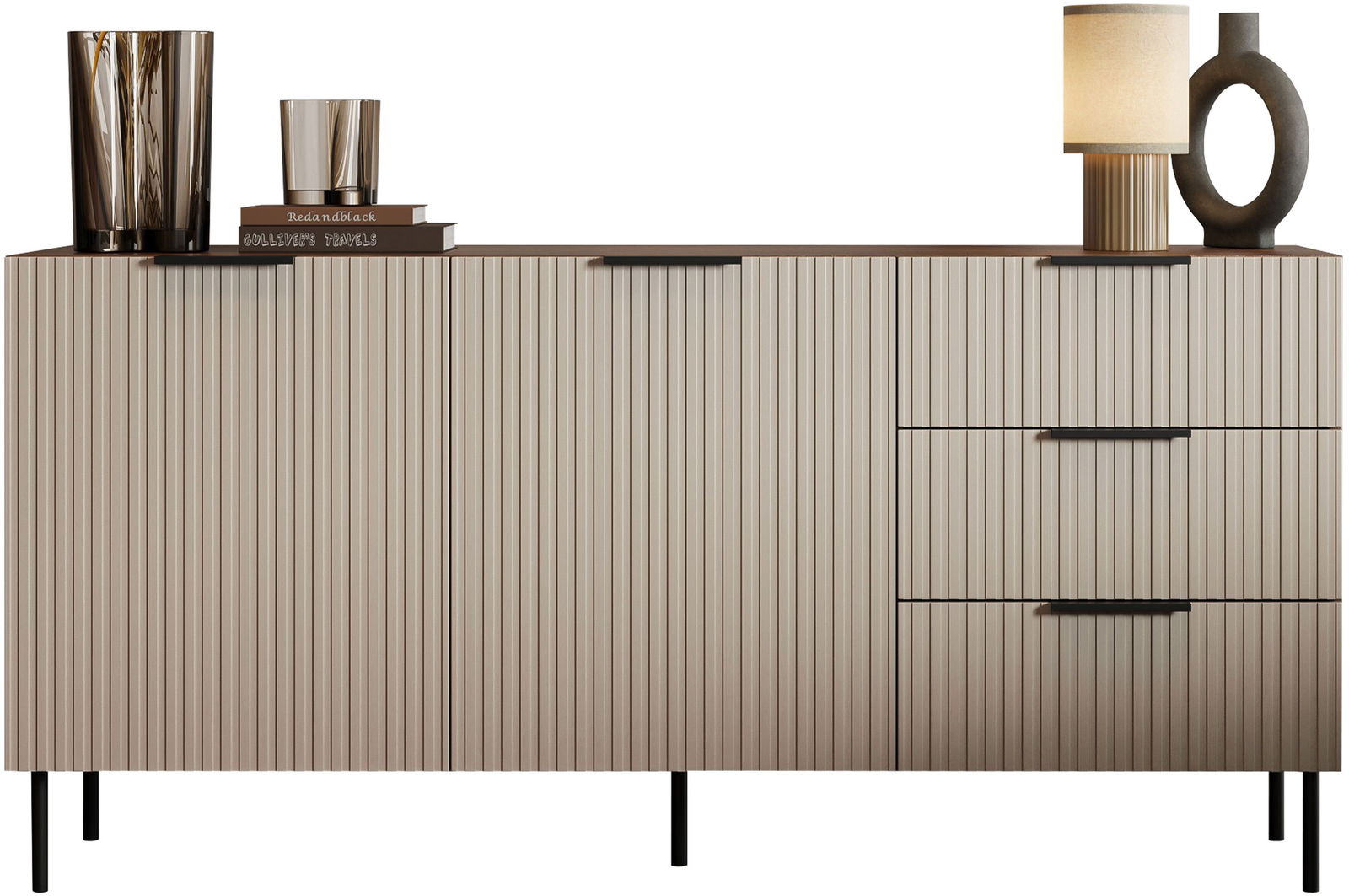 Ο μπουφές Almera I συνδυάζει πρωτοποριακό σχεδιασμό με πρακτικότητα, φέρνοντας μια μοντέρνα πινελιά στον χώρο σας. Με ραβδωτές προσόψεις – κορυφαία τάση στη διακόσμηση – και κομψούς χρωματισμούς, αναδεικνύει το στυλ και τη φινέτσα του σπιτιού. Διαθέτει ευρύχωρα ντουλάπια και συρτάρια, προσφέροντας ιδανική οργάνωση για καθημερινά αντικείμενα.