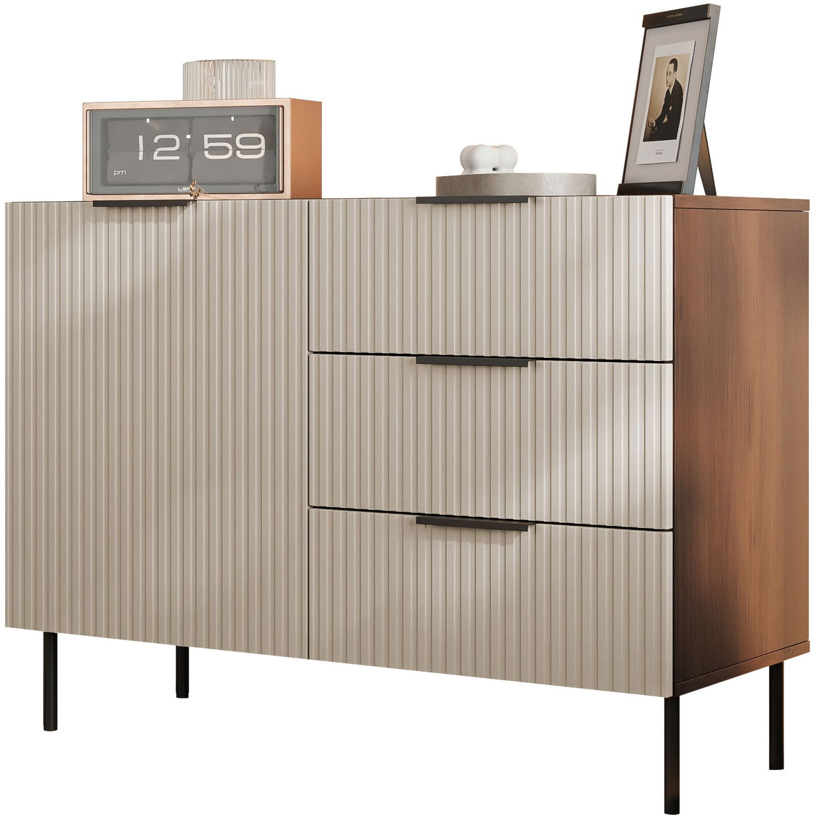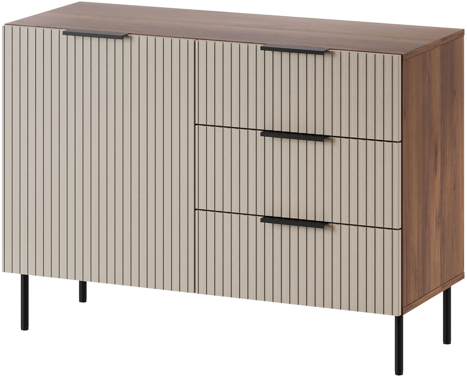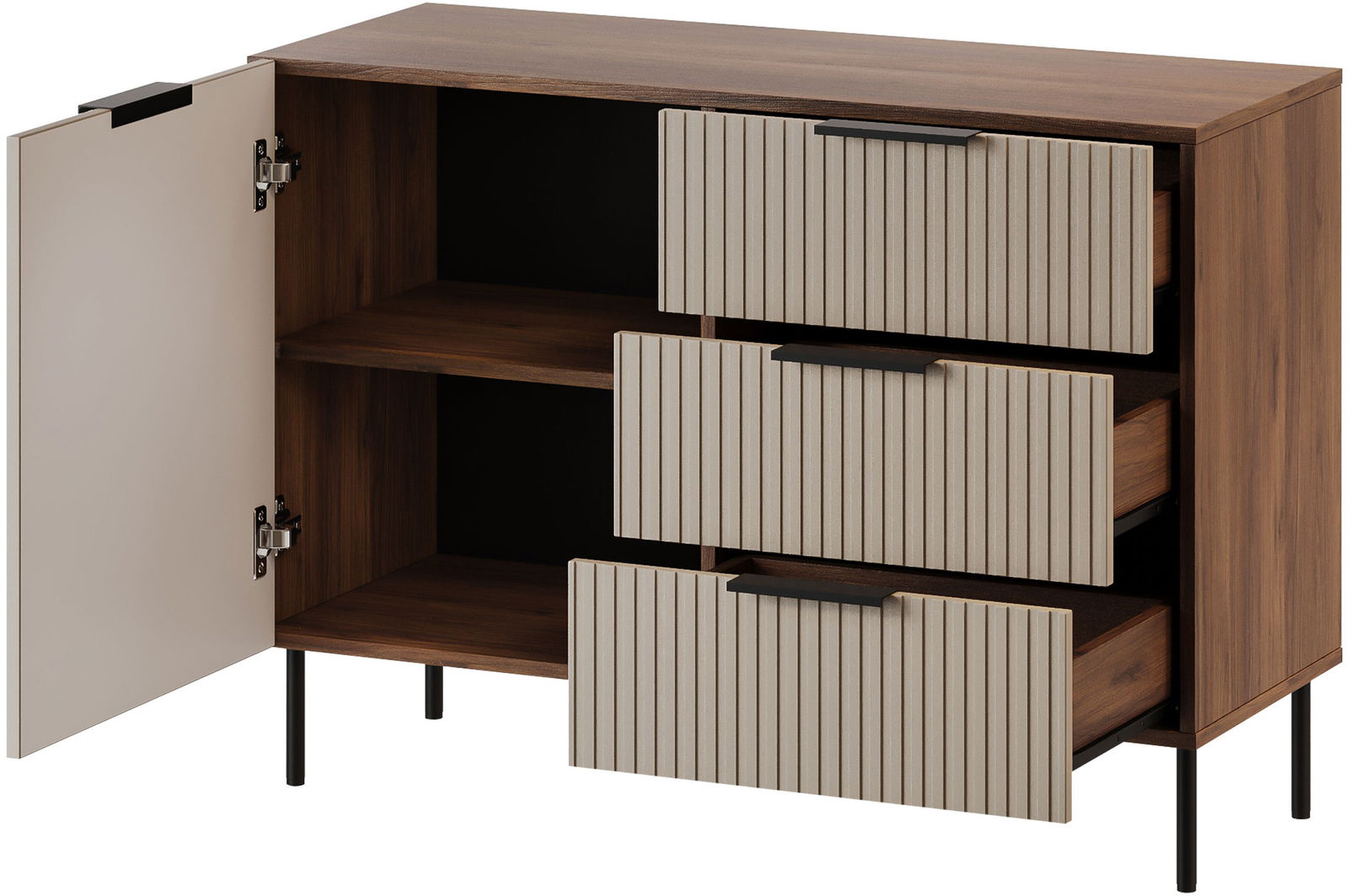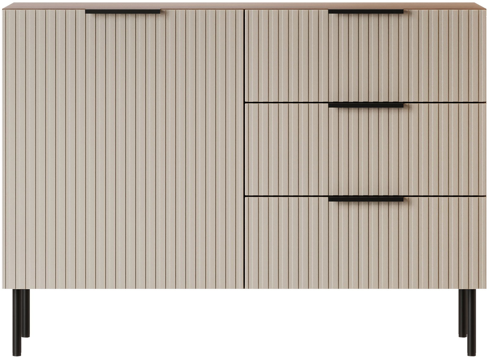 Ο σύγχρονος μπουφές Almera II με ψηλά, λεπτά πόδια δημιουργούν αίσθηση ελαφρότητας και διευκολύνουν τη διατήρηση της καθαριότητας από κάτω. Ιδανική για το σαλόνι, το υπνοδωμάτιο ή το διάδρομο.