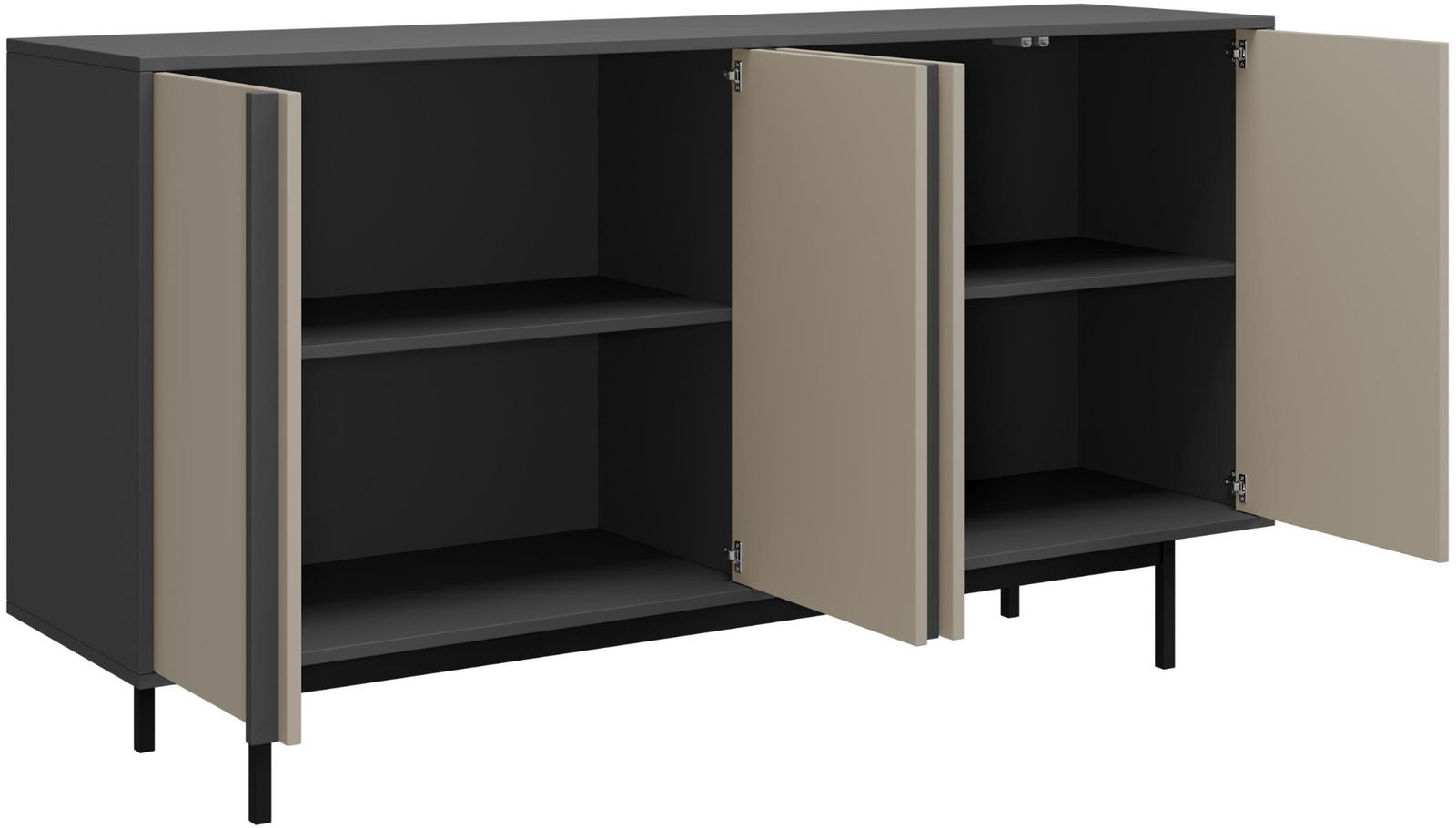 Ο μπουφές Alsy Reg I συνδυάζει κομψότητα και λειτουργικότητα με μινιμαλιστικό σχεδιασμό και ψηλά πόδια. Διαθέτει τέσσερα ευρύχωρα ράφια για ρούχα, υφάσματα ή έγγραφα, ενώ η μεγάλη επιφάνειά της προσφέρει χώρο για διακόσμηση με φυτά, φωτιστικά ή αγαπημένα αντικείμενα. Διατίθεται σε διάφορα χρώματα προσόψεων για να ταιριάζει σε κάθε στυλ διακόσμησης.