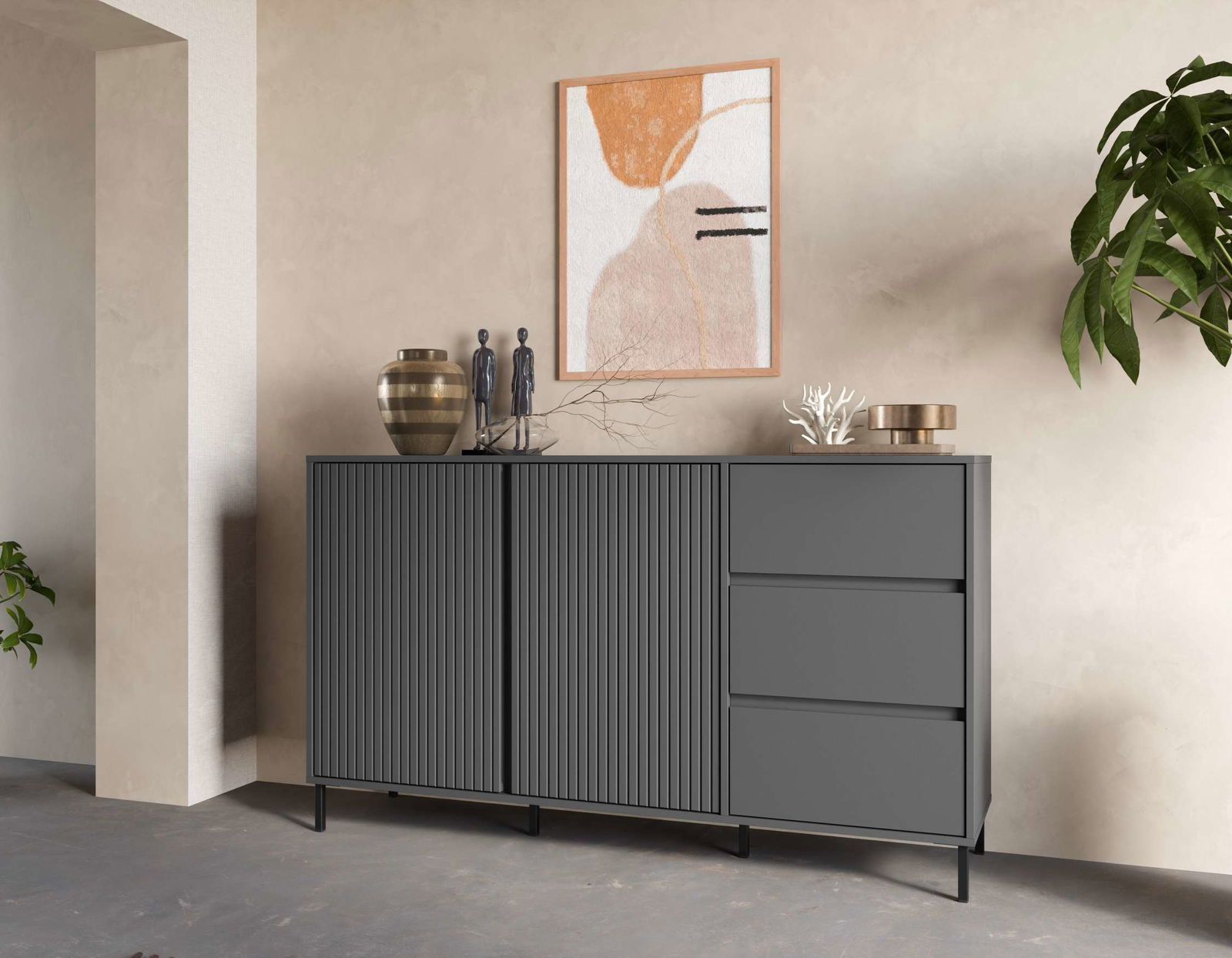 Ο μπουφές Anel ιδανικός για σαλόνια ή τραπεζαρίες, προσθέτει μια πινελιά εκλεπτυσμού σε κάθε χώρο. Συνδιάστε το προϊόν και με τα υπόλοιπα της σειράς Anel.