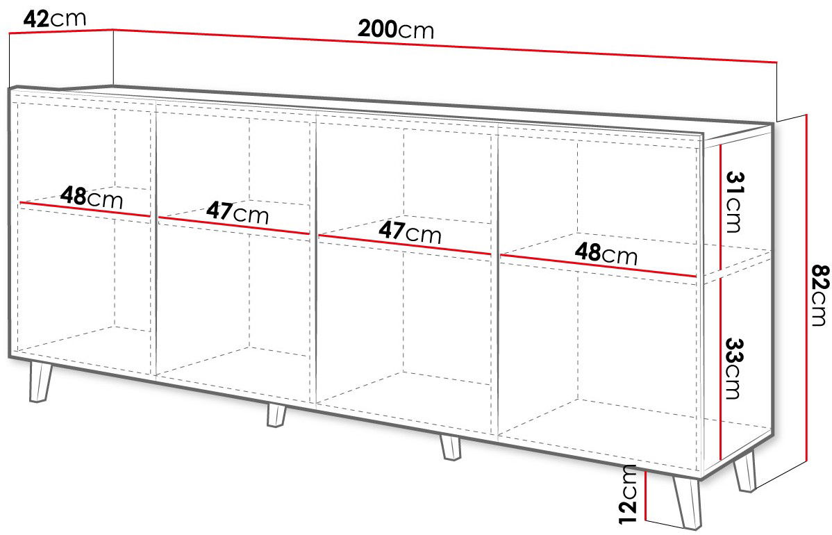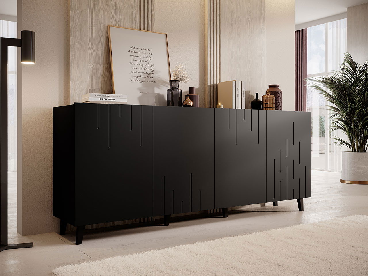 Μπουφές Bari μοντέρνου σχεδιασμού με πρακτικούς χώρους για αποθήκευση αντικειμένων.