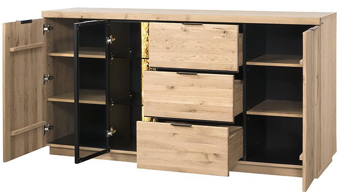 Αναβαθμίστε τη διακόσμηση του σπιτιού σας με τον κομψό και λειτουργικό μπουφέ Campania. Κατασκευασμένος από ξύλο δρυός υψηλής ποιότητας, αυτό το κομμάτι αποπνέει διαχρονική κομψότητα και ζεστασιά. Αυτό που κάνει τον μπουφέ Campania να διαφέρει, είναι το εντυπωσιακό κομμάτι ξύλου που φωταγωγείται πρόσθετωντας μια αίσθηση εκλεπτυσμού.