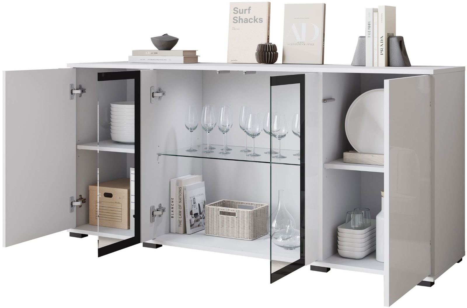 Ο μπουφές Caro SB 4D με πόρτες συνδυάζει μοντέρνο, λιτό σχεδιασμό με πρακτικότητα. Διαθέτει ευρύχωρα ράφια πίσω από γυάλινες και αδιαφανείς πόρτες, ιδανικά για οργάνωση αντικειμένων ή έκθεση διακοσμητικών. Η επιφάνειά της προσφέρεται για διακόσμηση με λουλούδια, φωτογραφίες ή βιβλία. Χωρίς χερούλια και με τεχνολογία “push to open”, εξασφαλίζει κομψότητα και άνεση χρήσης.