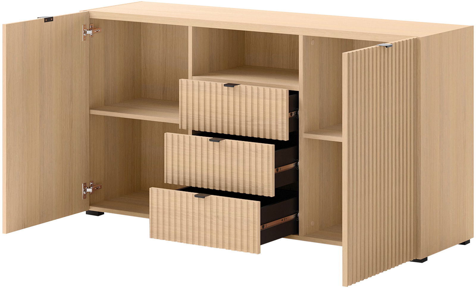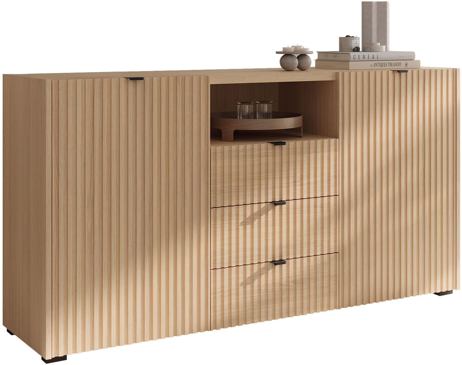 Ο κομψός και διαχρονικός μπουφές Cyliza II συνδυάζει μινιμαλιστικό σχεδιασμό με πρακτικότητα. Διαθέτει ραβδωτές προσόψεις που προσθέτουν χαρακτήρα. Ιδανικό για σαλόνια, υπνοδωμάτια ή διαδρόμους.