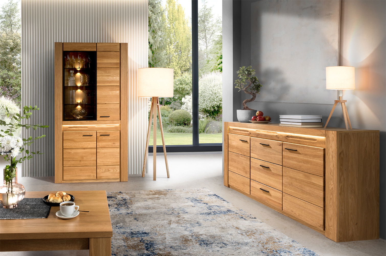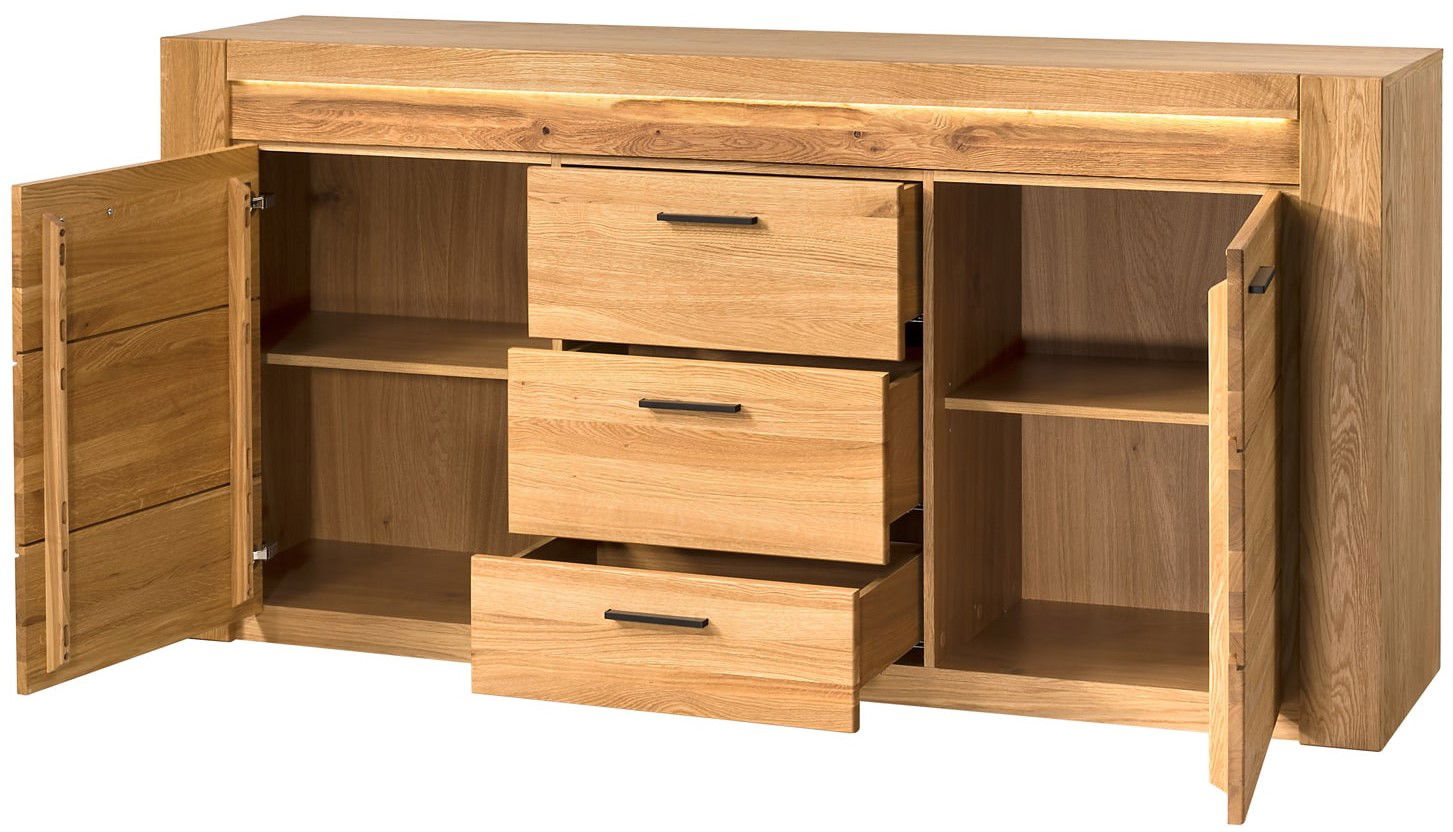 Ένας κομψός και υψηλής αισθητικής μπουφές, με φυσικές λεπτομέρειες ξύλου και ευρύχωρους αποθηκευτικούς χώρους