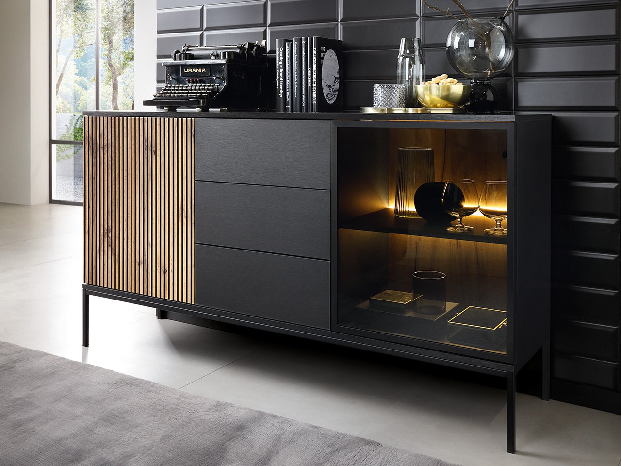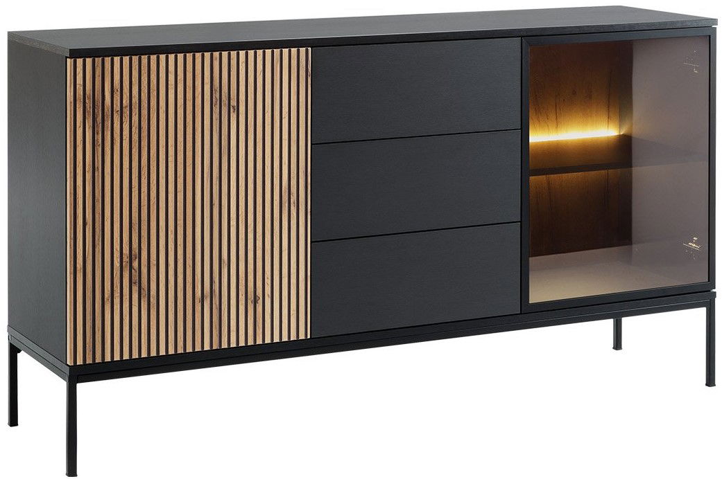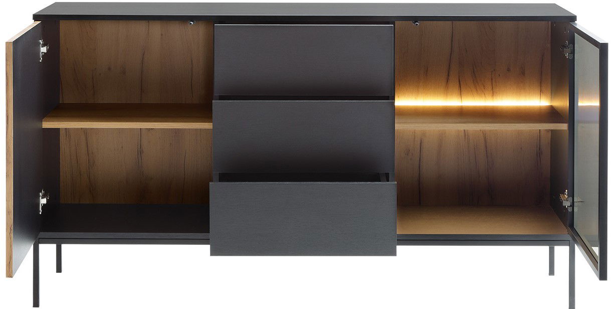 Μπουφές Haven II με μοντέρνο σχεδιασμό και ιδανικούς αποθηκευτικούς χώρους. Η γυάλινη πρόσοψη θα σας δώσει την δυνατότητα να διακοσμήσετε και αναδείξετε κατάλληλα τον χώρο του σαλονιού σας.