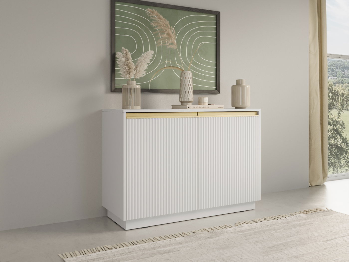 Ο μπουφές Imperial αναβαθμίζει το σαλόνι σας με ιδαίτερα έξυπνο και ευέλικτο design. Αυτό το κομψό και μοντέρνο κομμάτι διαθέτει εντυπωσιακό φινίρισμα με χρυσές πινελιές στις χωνευτές λαβές, δημιουργώντας μια πολυτελή και εκλεπτυσμένη εμφάνιση. Οι ανάγλυφες πόρτες προσθέτουν μια πινελιά υφής και οπτικού ενδιαφέροντος, ενώ ο άφθονος αποθηκευτικός χώρος παρέχει μια πρακτική λύση για τις ανάγκες της τραπεζαρίας σας ή του σαλονιού. Συνδιάστε το προϊόν και με τα υπόλοιπα της σειράς Imperial.
