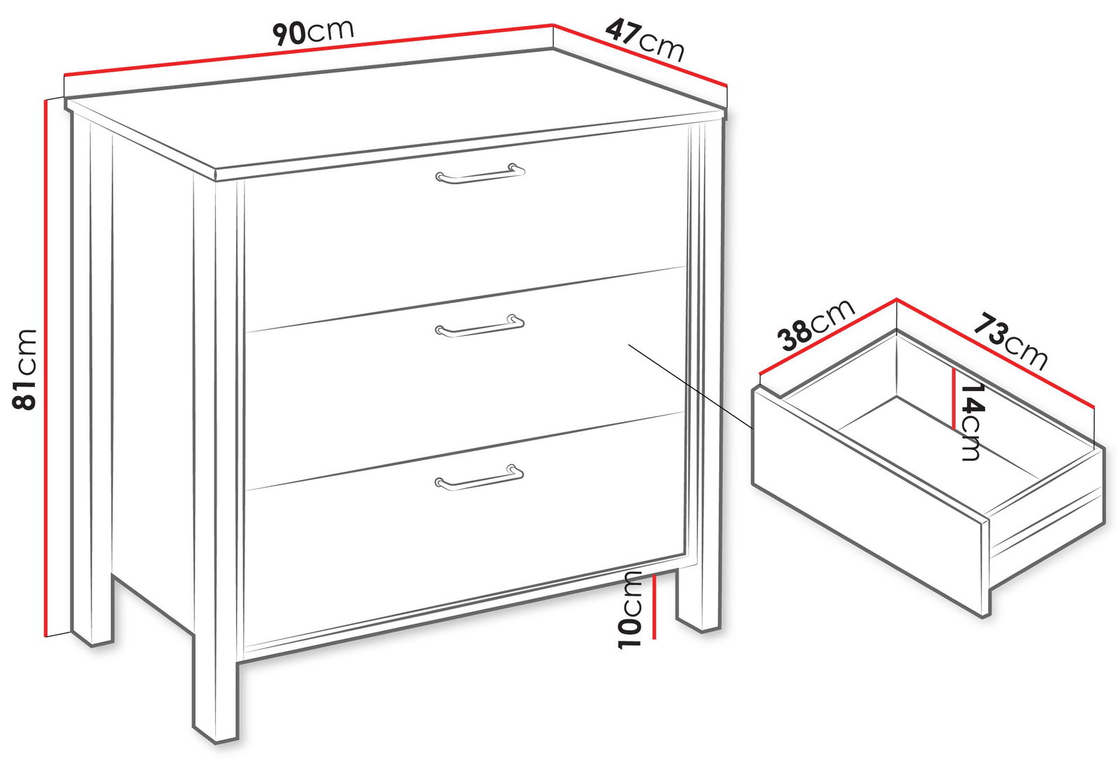 – Με τρία εύρυχωρα συρτάρια