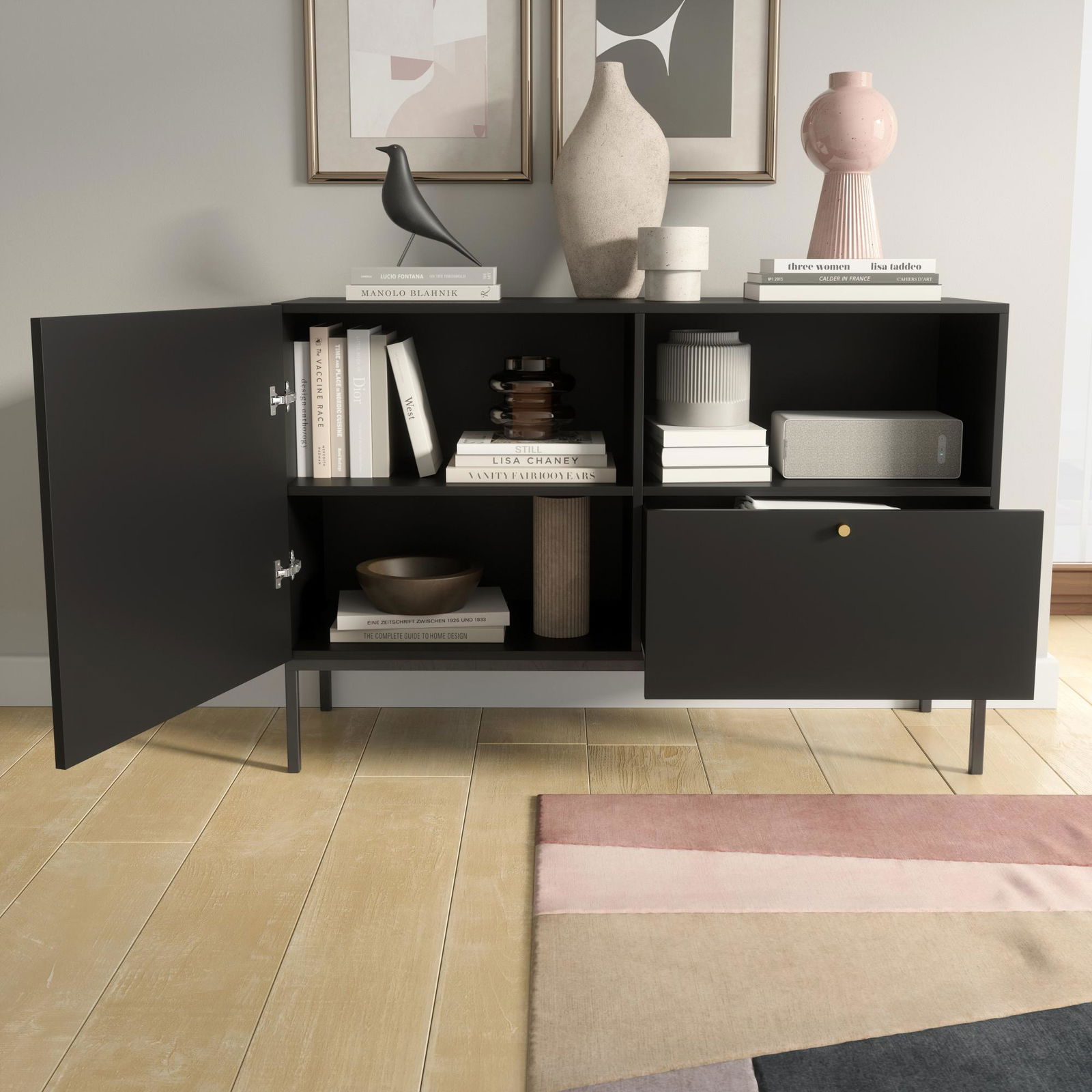Μπουφές Lazzy μίνιμαλ σχεδιασμού με πρακτικούς αποθηκευτικούς χώρους και μοντέρνα διχρωμία. Συνδυάστε το με τα υπόλοιπα έπιπλα της ίδιας σειράς για ενα ομοιόμορφο αποτέλεσμα.