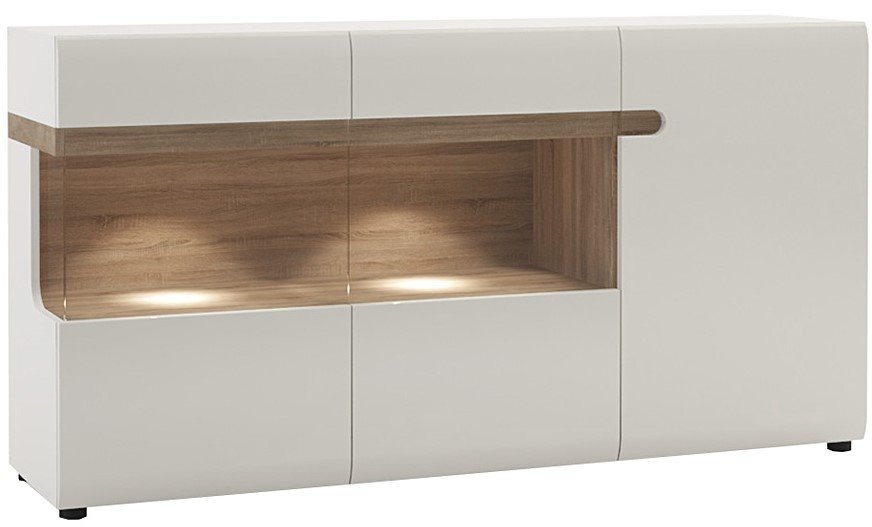 Οργανώστε το χώρο του σαλονιού ή της τραπεζαρίας, προσθέτωντας έναν κομψό μπουφέ με άφθονους αποθηκευτικούς χώρους, που θα αναδείξει την αισθητική του χώρου! Διαθέτει ευρύχωρα ράφια όπου μπορείτε να τοποθετήσετε σερβίτσια ή μαγειρεικά σκεύη και μια βιτρίνα με δυνατότητα προσθήκης φωτισμού, ιδανικό σημείο για να τοποθετήσετε κορνίζες ή διακοσμητικά αντικείμενα!