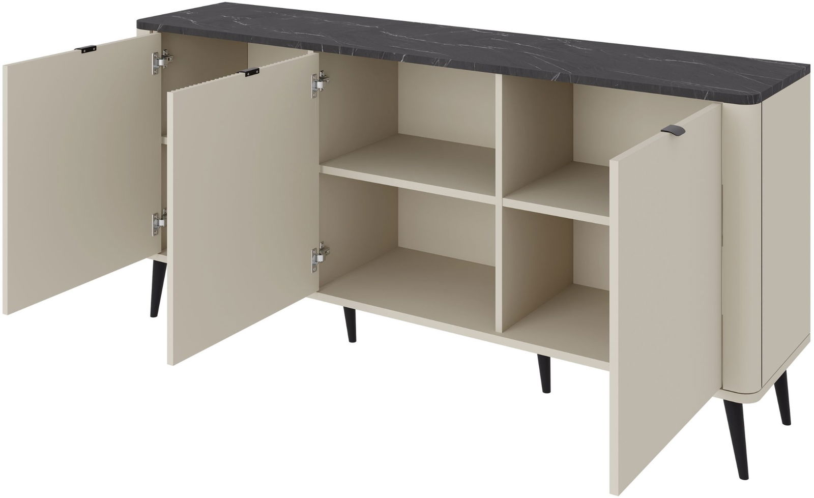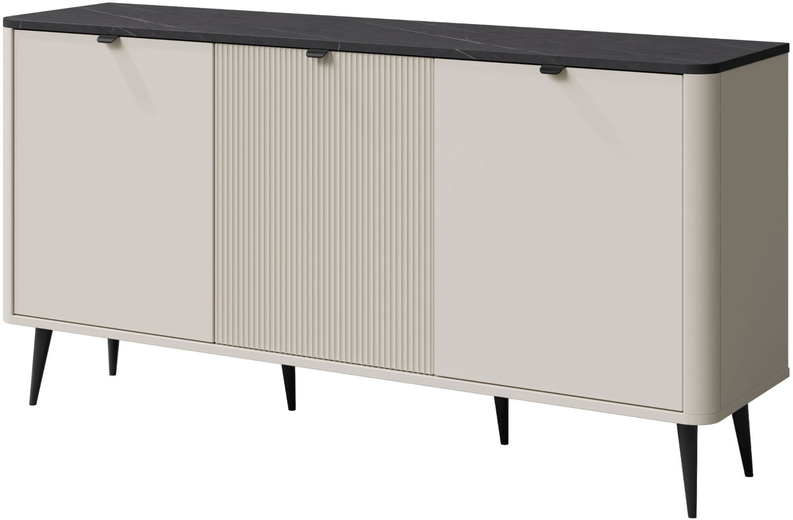 Ο μπουφές Marly Reg ΙI συνδυάζει λειτουργικότητα και αισθητική, προσφέροντας άφθονο αποθηκευτικό χώρο. Διαθέτει δύο ομαλές πόρτες στα πλαϊνά και μια κεντρική πόρτα με διακριτικό ανάγλυφο κάθετο σχέδιο. Ιδανικό για το καθιστικό, την τραπεζαρία ή το χολ, προσθέτοντας στυλ και πρακτικότητα σε κάθε χώρο.
