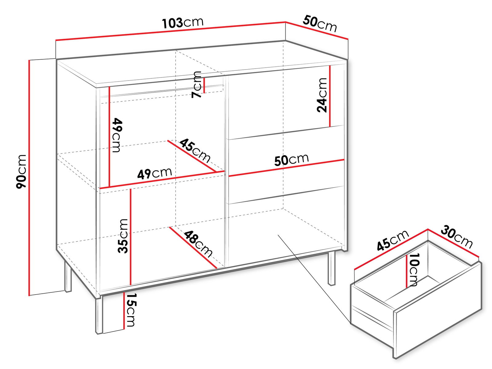 – 3 συρτάρια