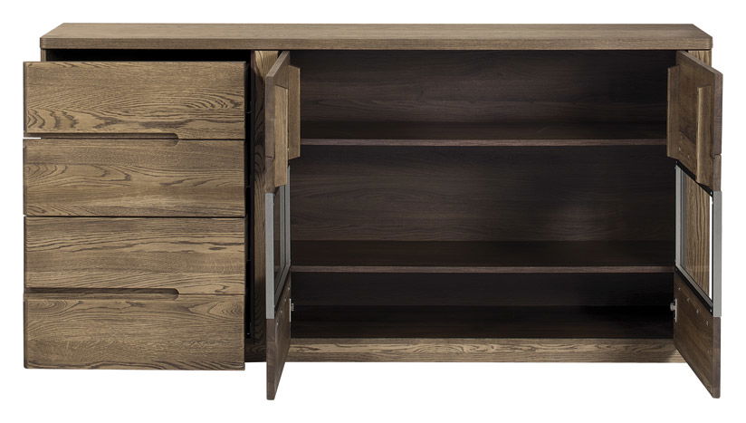 Ο μπουφές Navarro plus είναι ένα επιβλητικό έπιπλο που φτιάχτηκε για να εντυπωσιάζει! Χάρη στις γενναιόδωρες διαστάσεις του και την μοναδική του εμφάνιση, θα αποτελέσει το κέντρο της τραπεζαρίας σας. Η πρόσοψη από βουρτσισμένο μασίφ ξύλο σε smoked rustical χρώμα του χαρίζει στιβαρότητα και αφήνει μια πολυτελή αίσθηση στο άγγιγμα. Συνδυάστε τον με τον προαιρετικό φωτισμό για να του δώσετε μια μοναδική όψη σε συνθήκες χαμηλού φωτισμού!