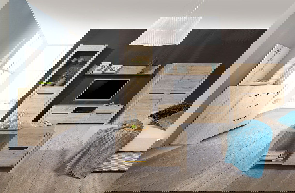 Μπουφές Olavo λιτού και μοντέρνου σχεδιασμού σε φυσικό χρώμα με ευρύχωρους και πρακτικούς εσωτερικούς χώρους
