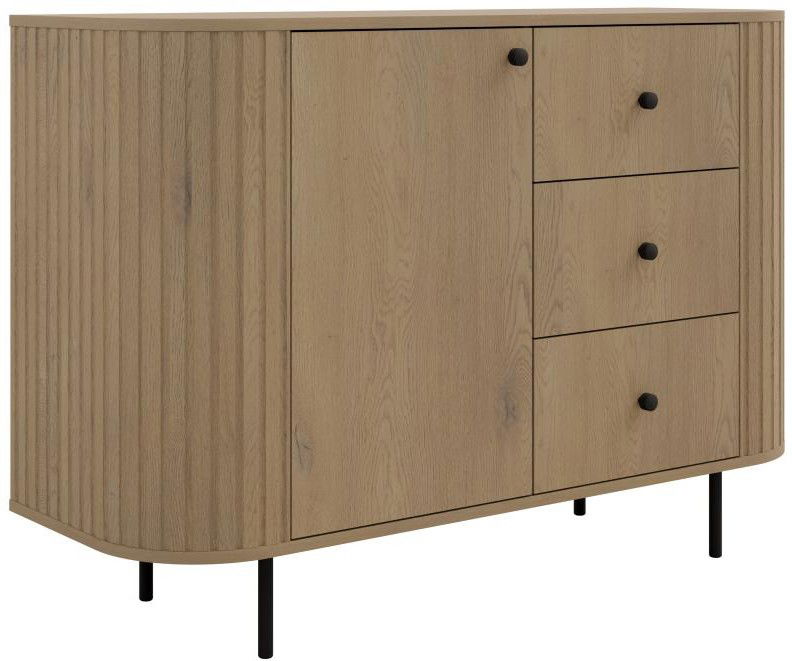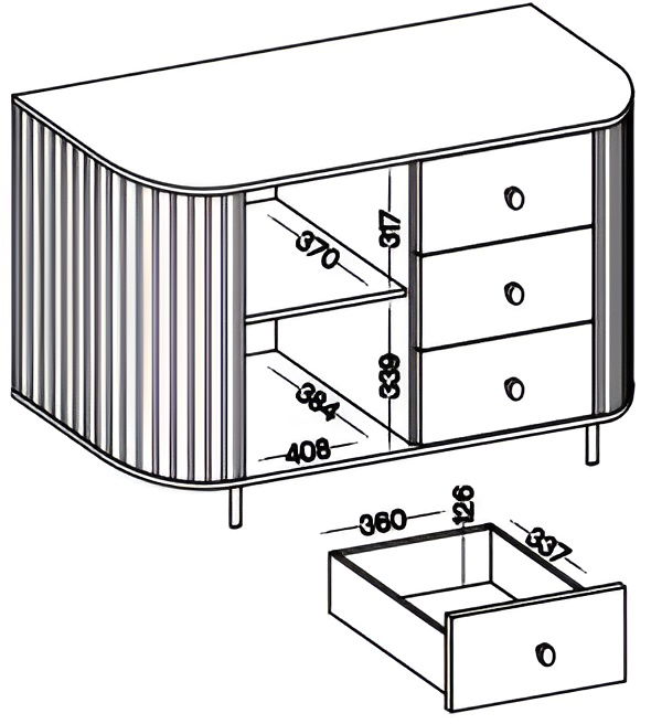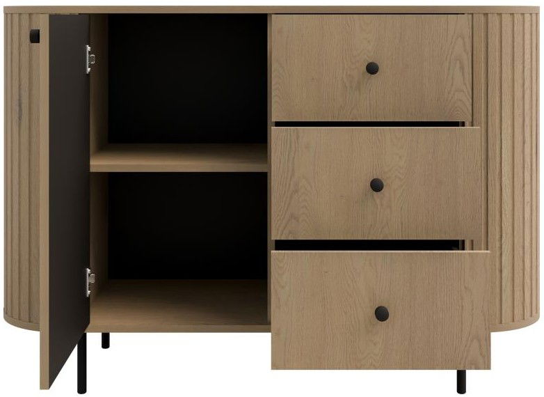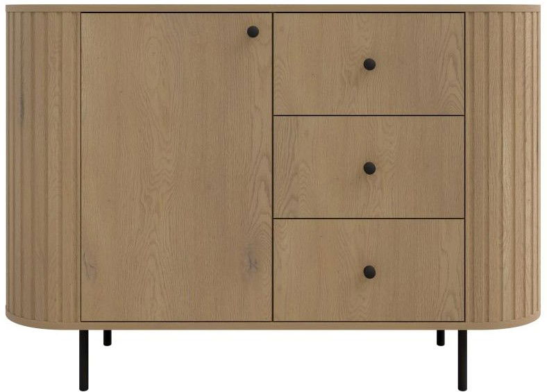 Ο μπουφές Ovelia συνδυάζει τη μοντέρνα αισθητική με τη φυσική κομψότητα, δημιουργώντας ένα διαχρονικό έπιπλο που προσθέτει στυλ και ζεστασιά σε κάθε χώρο. Οι στρογγυλεμένες πλευρές και οι κάθετες αυλακώσεις χαρίζουν έναν ιδιαίτερο, εκλεπτυσμένο χαρακτήρα, ενώ τα μαύρα μεταλλικά πόδια και τα minimal κουμπώματα προσθέτουν μια σύγχρονη πινελιά.