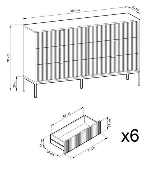 Μπουφές Palermo IV, μοντέρνου σχεδιασμού, με 6 συρτάρια. Συνδυάστε το με τα υπόλοιπα έπιπλα της σειράς για μια ξεχωριστή σύνθεση σαλονιού.