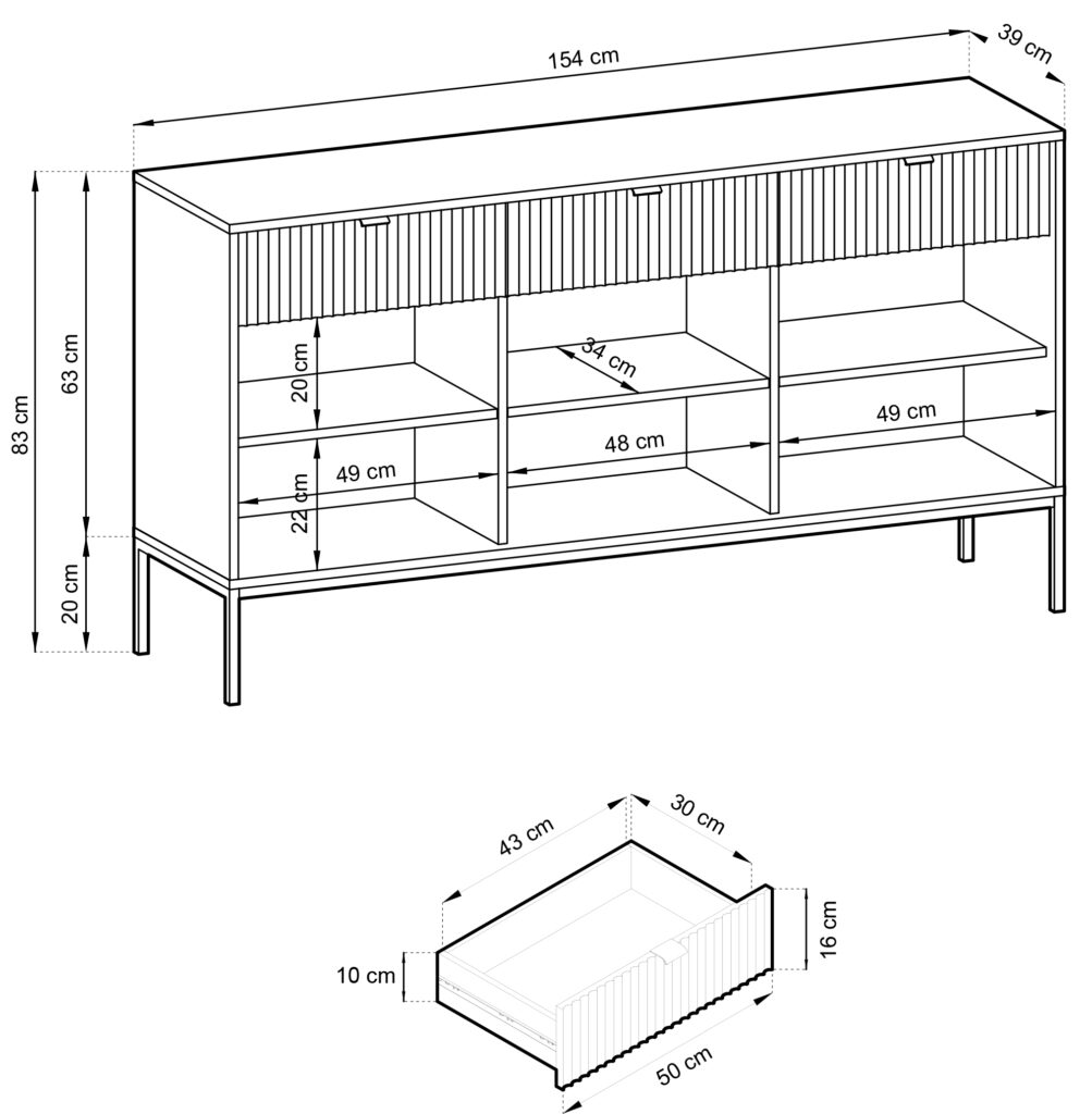 Μπουφές Palermo, μοντέρνου σχεδιασμού, με 3 ντουλάπια και 3 συρτάρια. Συνδυάστε το με τα υπόλοιπα έπιπλα της σειράς για μια ξεχωριστή σύνθεση σαλονιού.