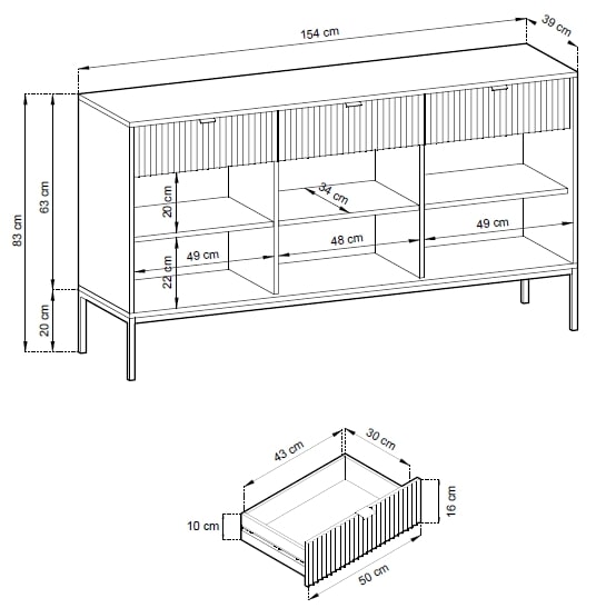 Μπουφές Palermo, μοντέρνου σχεδιασμού, με 3 ντουλάπια και 3 συρτάρια. Συνδυάστε το με τα υπόλοιπα έπιπλα της σειράς για μια ξεχωριστή σύνθεση σαλονιού.