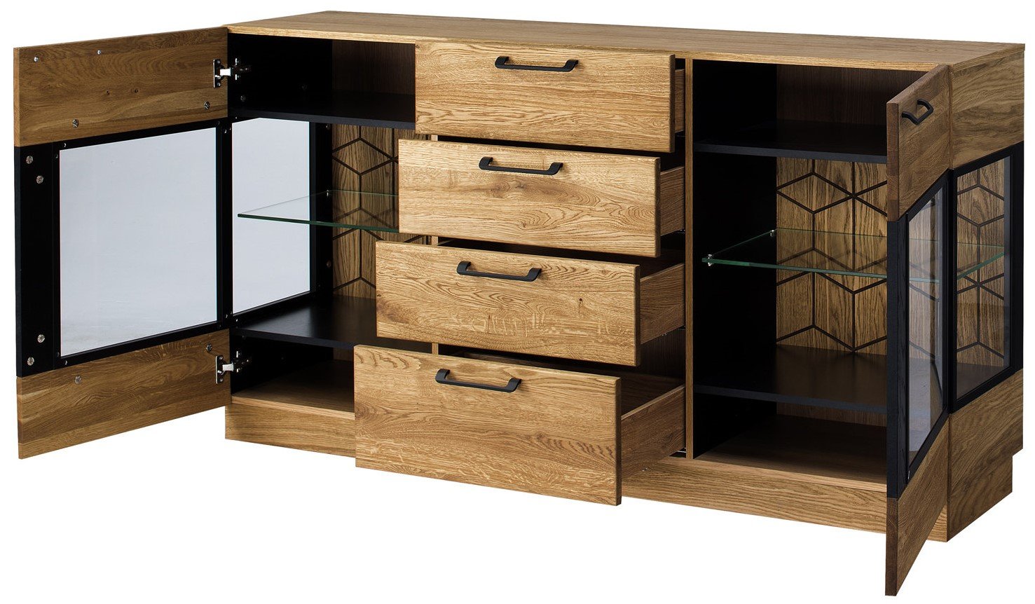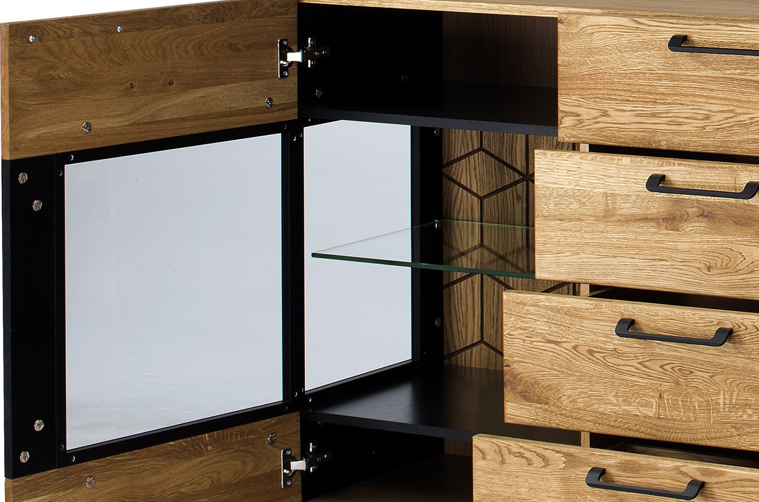Οι γήινοι χρωματισμοί του μπουφέ Rivina θα προσφέρουν μια φυσικότερη όψη στον χώρο, ενώ θα δημιουργήσουν μια πιο ζεστή και φιλόξενη ατμόσφαιρα. Χαρακτηριστική λεπτομέρειά της αποτελούν τα χαραγμένα στο ξύλο εξάγωνα, που η γεωμετρική τους αρμονία διαμορφώνει μια εξαιρετική διακοσμητική προσθήκη. Ένας άψογος συνδυασμός της σύγχρονης αισθητικής με μια κλασσική χρωματική αντίθεση, που αναμφίβολα θα κλέψει τις εντυπώσεις.