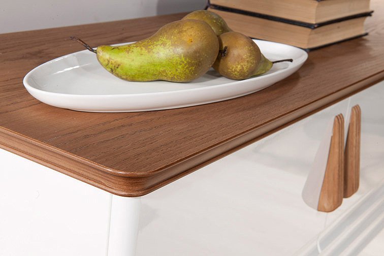 Μπουφές Terrin I, μοντέρνου και κομψού σχεδιασμού, σε όμορφο συνδυασμό λευκού χρώματος με καφέ λεπτομέρειες. Συνδυάστε τον με τα υπόλοιπα έπιπλα της ίδιας σειράς και δημιουργήστε μια σύνθεση που εντυπωσιάζει.