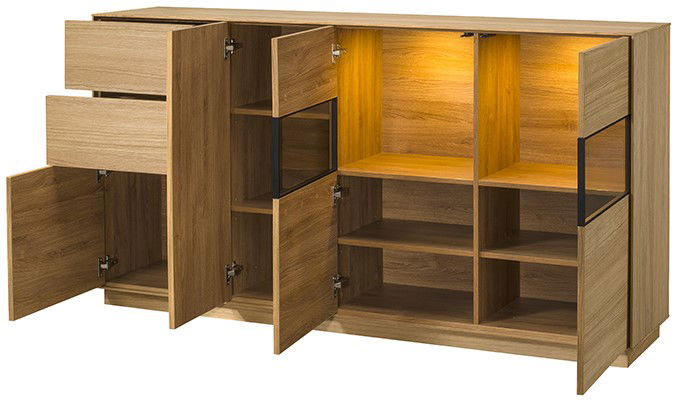 Αναβαθμίστε την τραπεζαρία ή το σαλόνι σας με τον κομψό και εξαιρετικά λειτουργικό μπουφέ Unirso. Κατασκευασμένος με όμορφο φινίρισμα που μοιάζει με φυσικό ξύλο, αυτό το έπιπλο συνδυάζει κλασικό σχεδιασμό με μοντέρνα χαρακτηριστικά, καθιστώντας τον ιδανική προσθήκη σε κάθε σπίτι.
