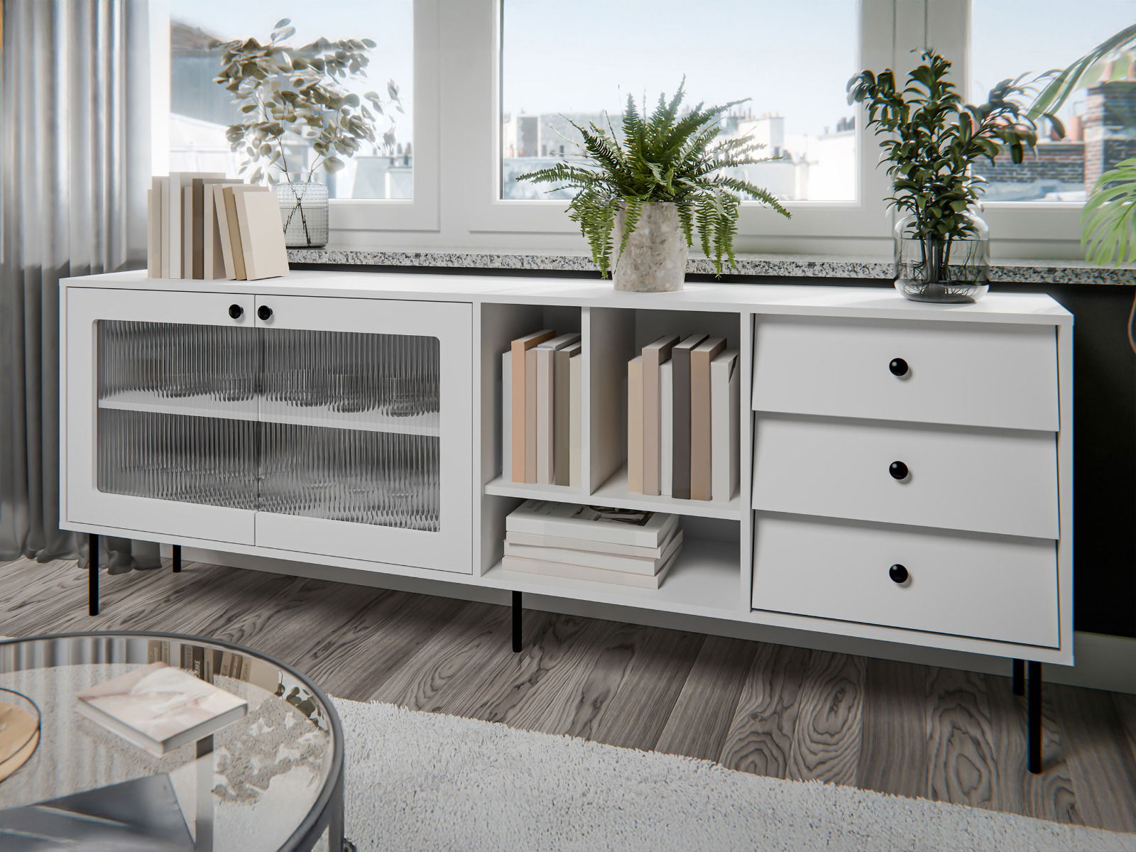 Ένα πολυλειτουργικό έπιπλο που ταιριάζει σε κάθε χώρο. Χρησιμοποιήστε το ως έπιπλο τηλεόρασης, ως βιβλιοθήκη ή ακόμα και ως μίνι μπαρ. Οι πολλές επιλογές αποθήκευσης σας επιτρέπουν να οργανώσετε τα πάντα με τον τρόπο που σας ταιριάζει.