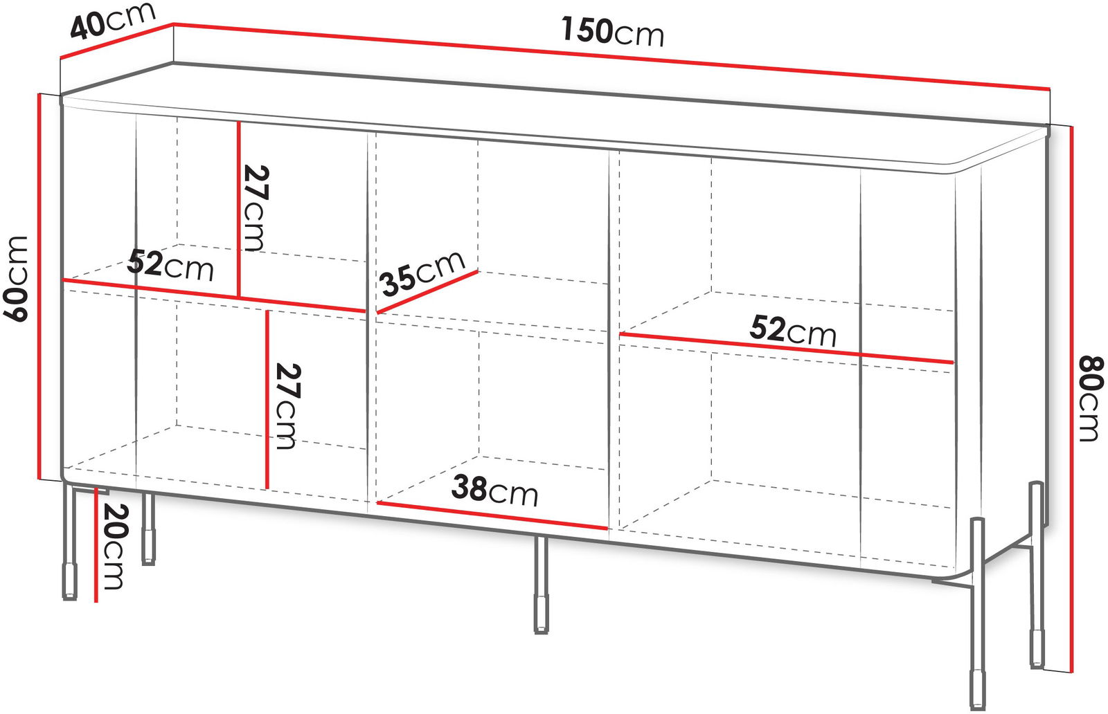 Ο μπουφές Vera 150 συνδυάζει κομψό σχεδιασμό με λειτουργικότητα. Ιδανική για το υπνοδωμάτιο ή την τραπεζαρία, προσφέρει άφθονο αποθηκευτικό χώρο για ρούχα, έγγραφα ή διακοσμητικά αντικείμενα.
