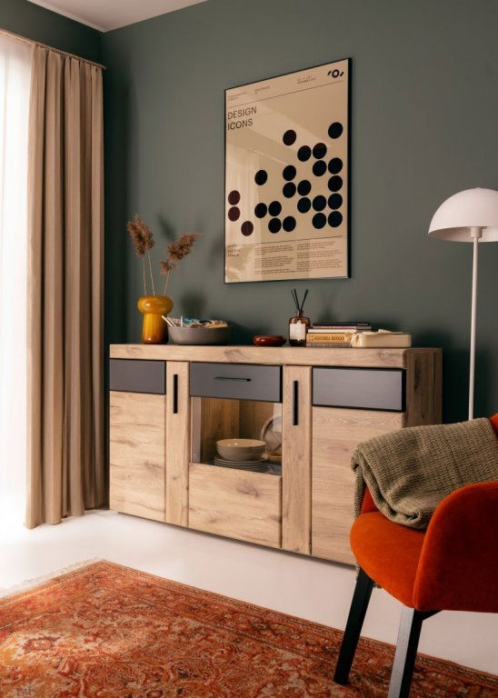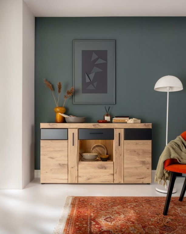Ο Μπουφές Viking II κάνει κάθε χώρο κομψό και λειτουργικό. Εντυπωσιάζει με τη χωρητικότητα, την ευελιξία και τον κομψό σχεδιασμό του. Με ευρύχωρα ράφια και μινιμαλιστικά γκρι στοιχεία ταιριάζει τόσο σε σαλόνια όσο και σε τραπεζαρίες. Συνδυάστε το προϊόν μαζί με τα υπόλοιπα έπιπλα της σειράς Viking.