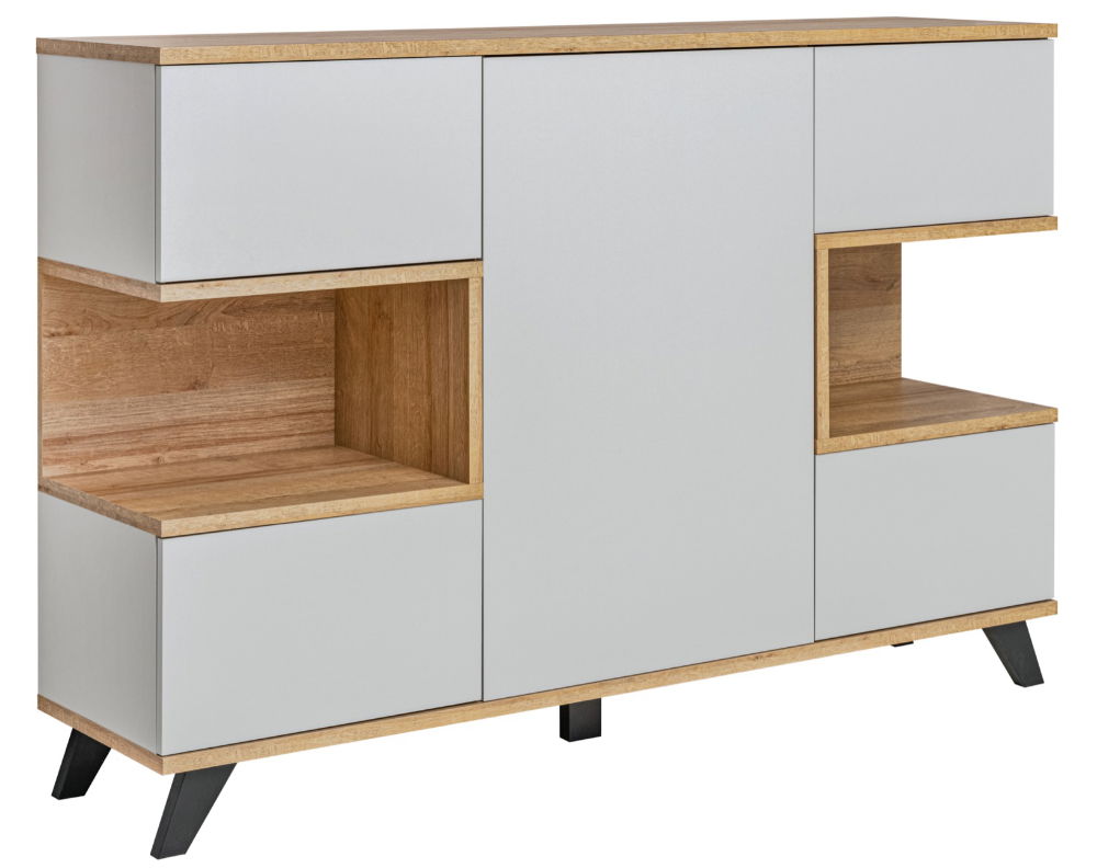 Ένας μπουφές σχεδιασμένος για να ικανοποιήσει και τους πιο απαιτητικούς. Όψη που σε καθηλώνει και χρώματα που χαρίζουν στην ατμόσφαιρα έναν αέρα φρεσκάδας. Ακολουθεί πιστά τους κανόνες της συμμετρίας και της γεωμετρίας. Την παράσταση κλέβουν τα ποδαράκια του που έρχονται και ολοκληρώνουν την άψοφη εικόνα του επίπλου.