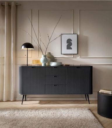 Μπουφές Zoha, μοντέρνου σχεδιασμού, με 2 ντουλάπια και 3 συρτάρια. Συνδυάστε το με τα υπόλοιπα έπιπλα της σειράς Zoha για μια ξεχωριστή σύνθεση σαλονιού.