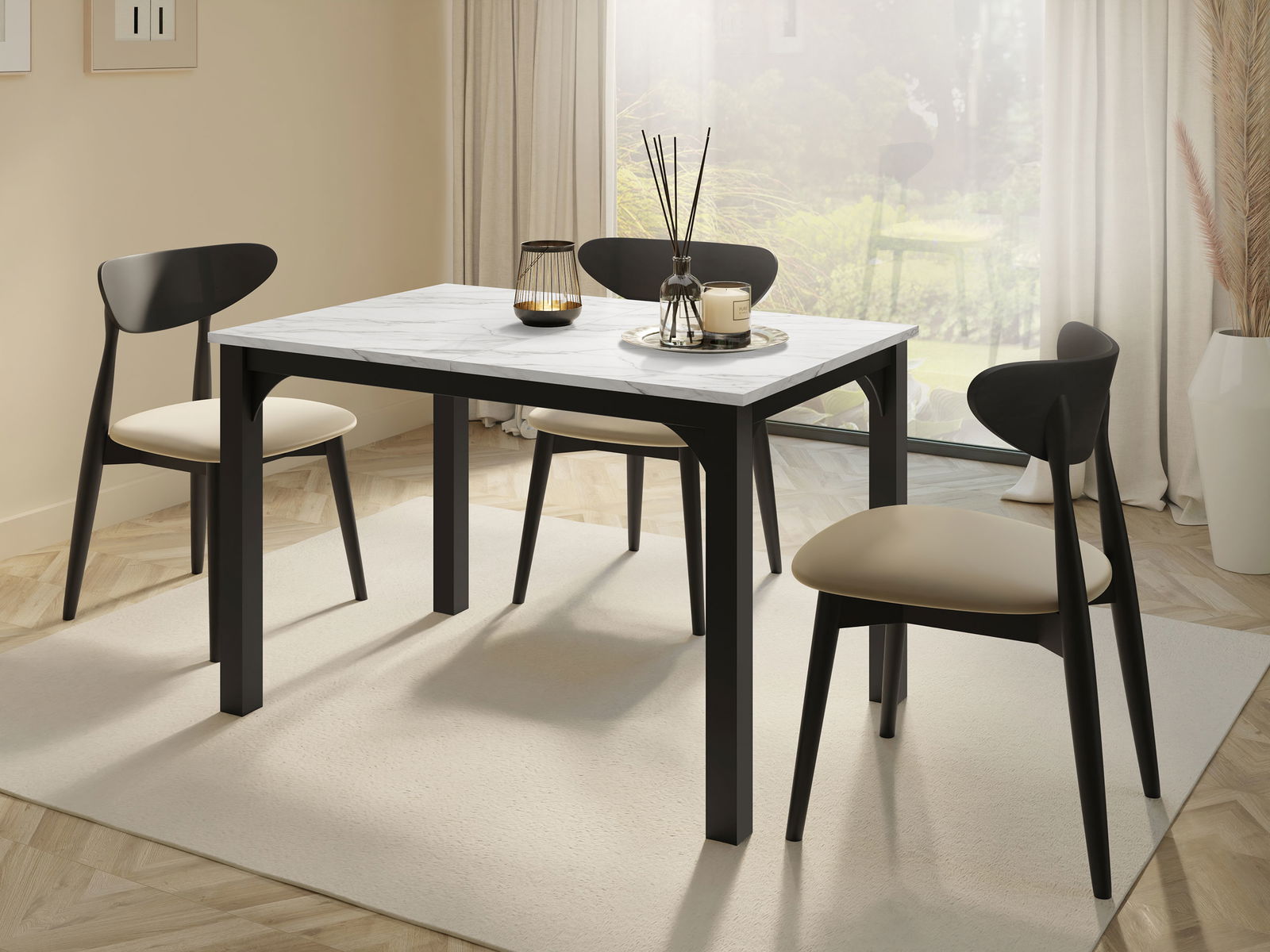 Το επεκτεινόμενο τραπέζι Focus συνδυάζει κομψότητα, εργονομία και μοντέρνο design. Η επιφάνειά του δίνει μια αίσθηση πολυτέλειας, ενώ η στιβαρή μαύρη βάση προσφέρει σταθερότητα και μοντέρνα αισθητική. Με μηχανισμό επέκτασης, προσαρμόζεται εύκολα στις ανάγκες της καθημερινότητας αλλά και των ειδικών περιστάσεων – από ένα απλό γεύμα μέχρι ένα δείπνο με φίλους.
