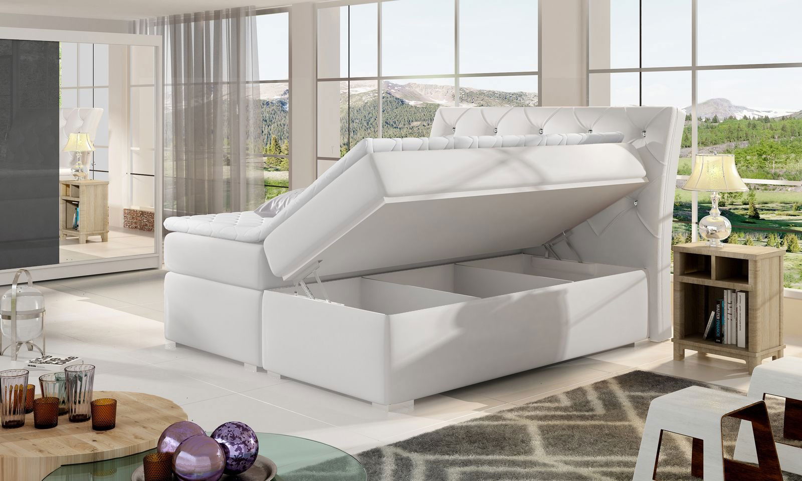 Επενδεδυμένο κρεβάτι Baltimore με στρώμα και ανώστρωμα-140 x 200-Leuko