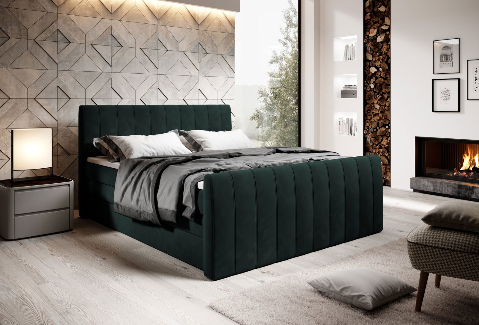 Επενδυμένο κρεβάτι Arena με στρώμα και ανώστρωμα μοντέρνου και πρακτικού σχεδιασμού, ιδανικό για στιγμές ξεκούρασης και χαλάρωσης.