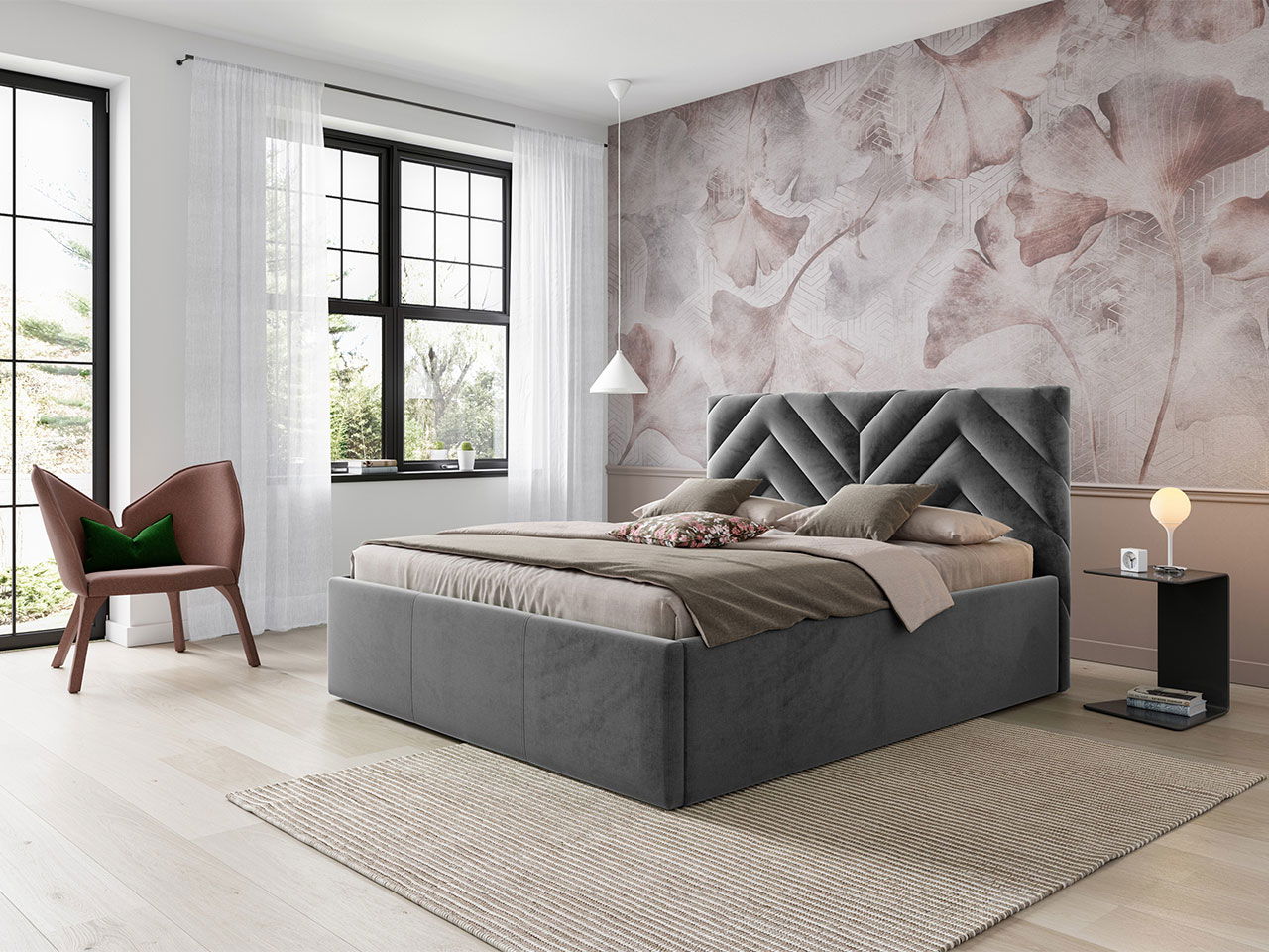 Επενδυμένο κρεβάτι Azzuro-Gkri Skouro-160 x 200