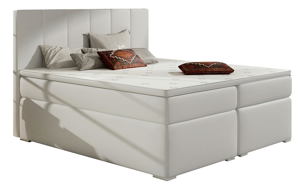 Επενδυμένο κρεβάτι Belo με στρώμα και ανώστρωμα-Λευκό-180 x 200