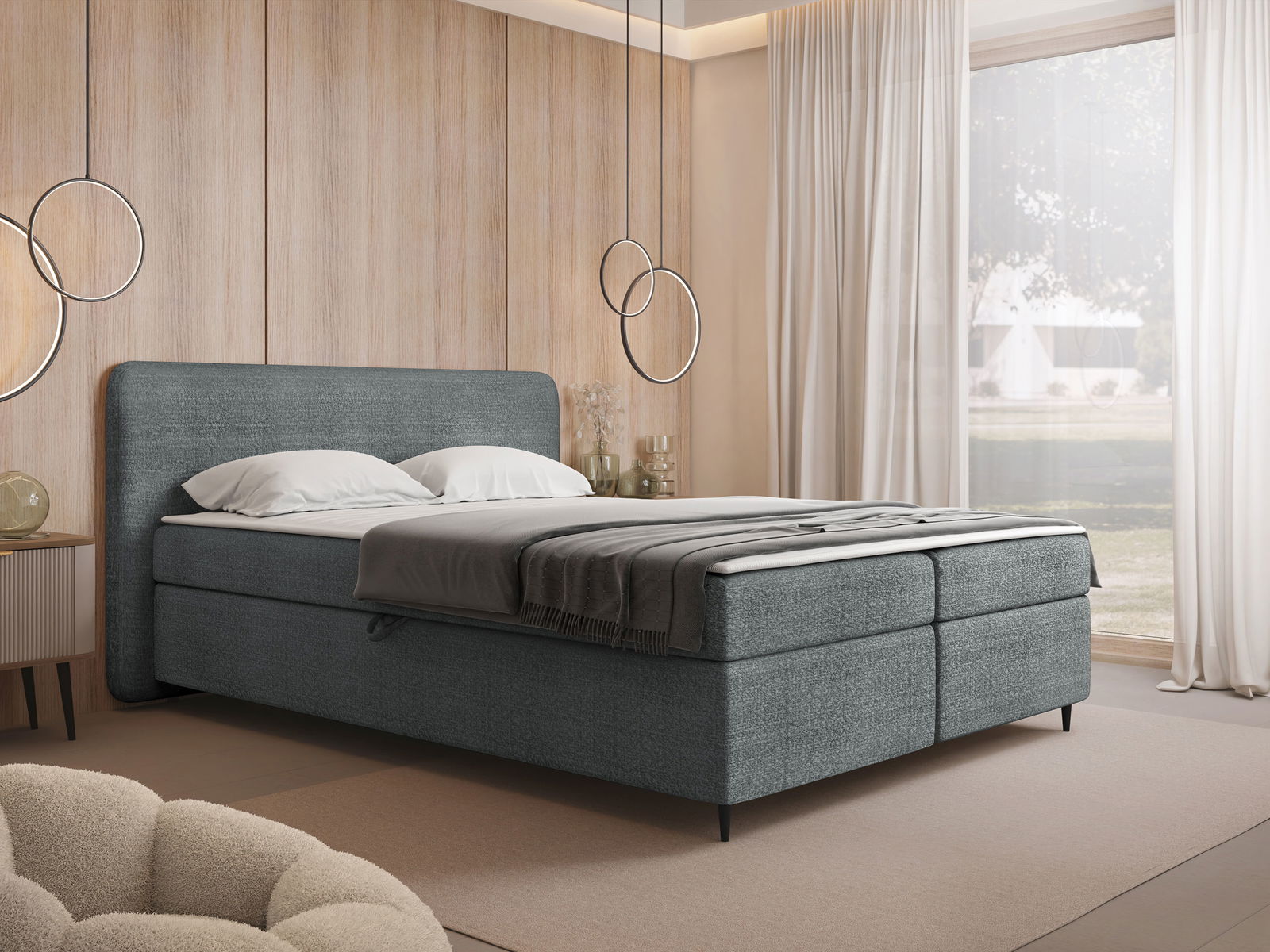 Το κομψό κρεβάτι Boho με αποθηκευτικό χώρο για κλινοσκεπάσματα συνδυάζει λειτουργικότητα και άνετο ύπνο.Μπορεί να ταιριάξει τέλεια σε κάθε υπνοδωμάτιο, προσφέροντας μια άνετη επιφάνεια για μια βραδινή ξεκούραση. Το ενσωματωμένο στρώμα και το επίστρωμα εξασφαλίζουν έναν υγιή, αναζωογονητικό ύπνο, ενώ τα υποαλλεργικά υλικά και το αφαιρούμενο κάλυμμα διευκολύνουν τη διατήρηση της υγιεινής.